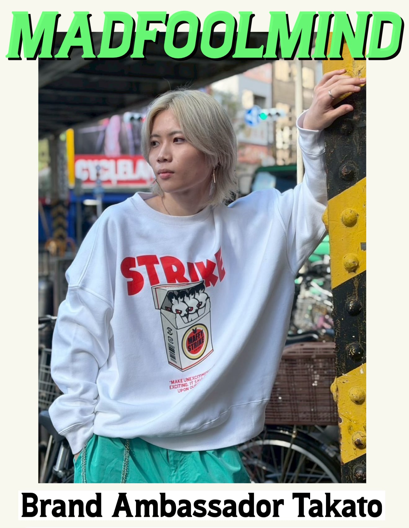 チャレンジしたいことがあるけれど 他人の目が気になる人たち そんな現代人の臆病な心をうさぎのキャラクターとしてデザインした マッフィー!! うさぎのような大きな耳で、他人からの意見や目線 価値観ばかり気にしていませんか? 肉食動物に、追われるウサギのように 穴の中に隠れていつか自分もチャレンジしようと1歩前に踏み出すことができずにビクビクと覚えていませんか? マッフィーはそんな臆病な自分を一歩乗り越えて 自分にしかできない世界、他人には絶対にできない 自分らしさを発信してほしい 何かにあうチャレンジしている人たちに 身に付けて欲しいぬいぐるみとなっています . MAD FOOL MINDとは? 狂愚の精神をブランドのテーマにしている。 人と同じ生き方をするのではなく 狂って生きよ(好きな事に没頭せよ他人等気にするな) 八方美人をしている人間には新しいものは産み出せない いつの時代も、人から"狂っている"そんな風に思われていた人間が新しい世界を発信していくのだ。 そして、その一歩を踏み出せない心の弱さを臆病なウサギのデザインに投影している。 MAD FOOL MINDの服は前に進むべき"異端児"へ 前ならえでしか生きられない精神への叛逆