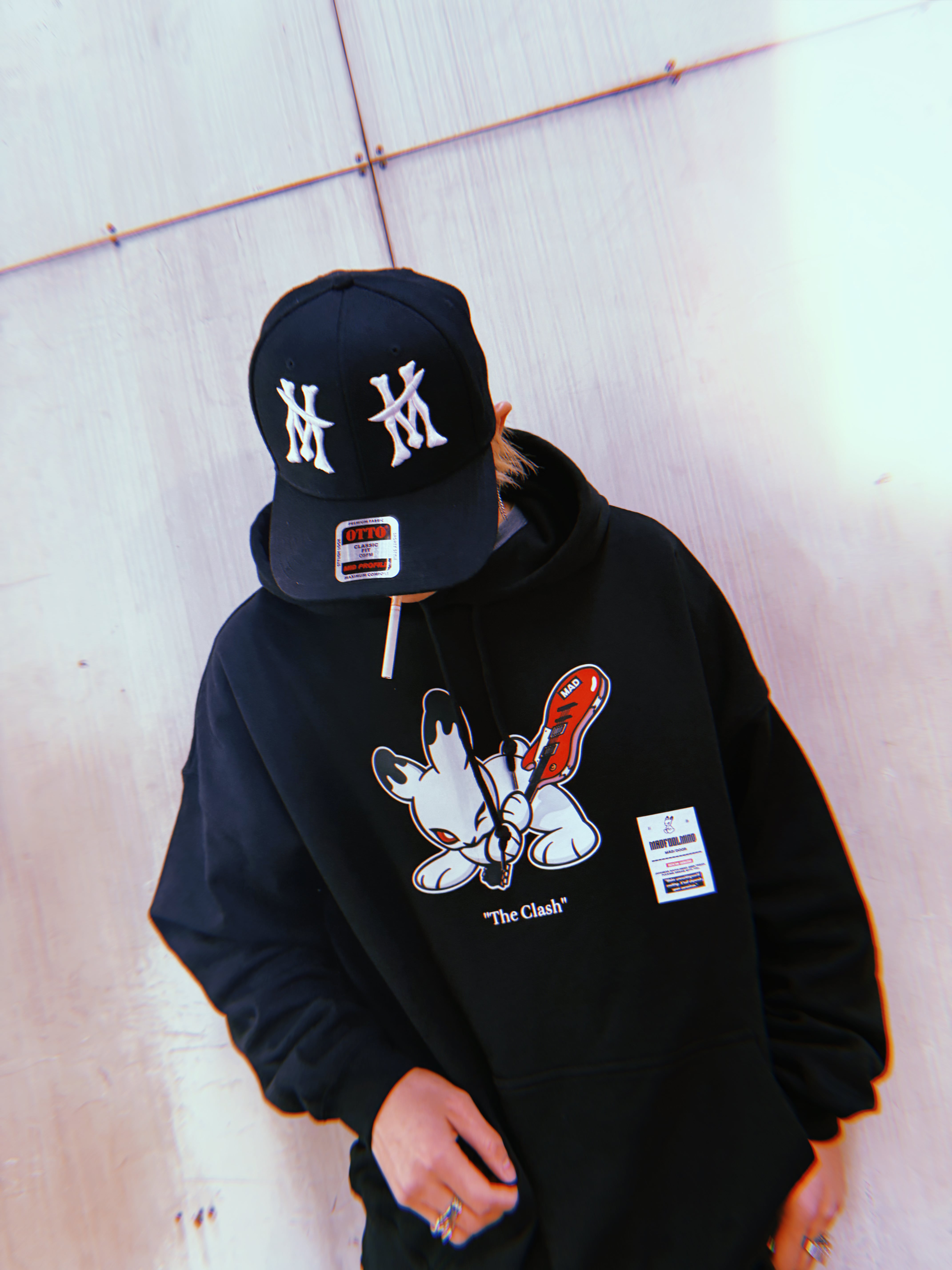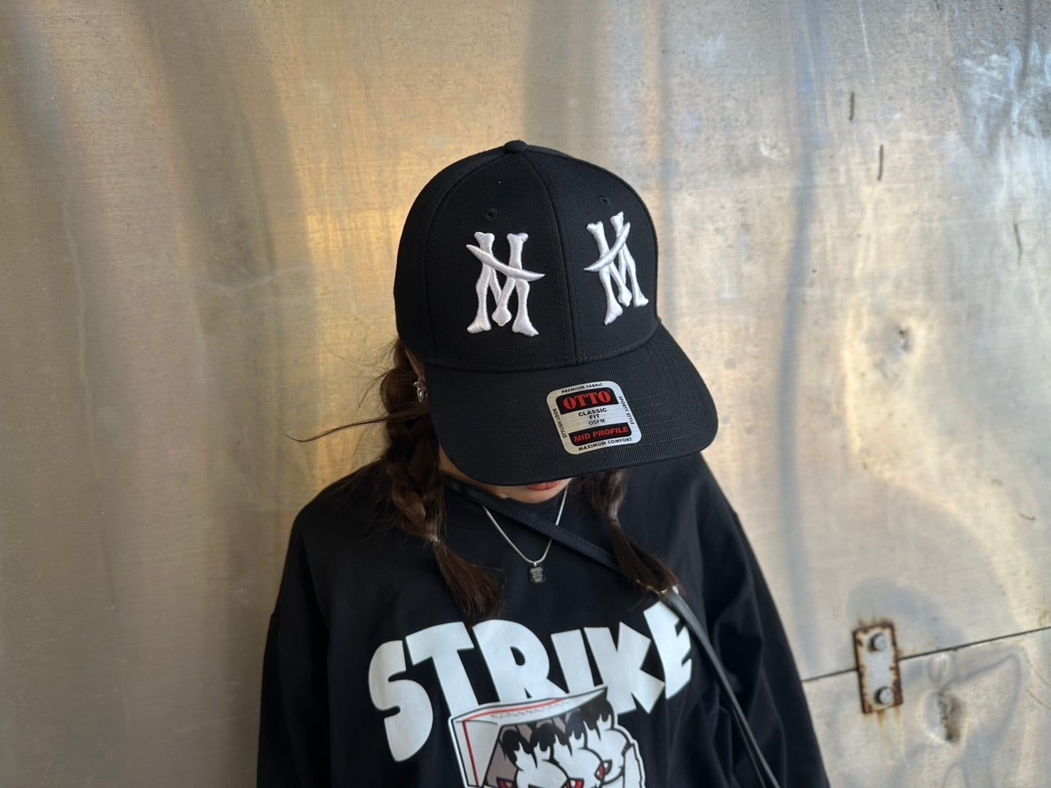 後ろのスナップバックでサイズ調整可能